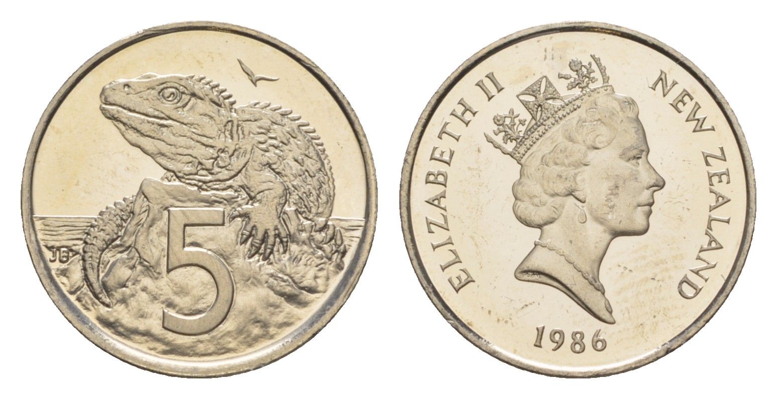 Новая Зеландия 5 центов 1986 тираж 10.000 экземпляров KM 60 медно-никель PROOF 24-124