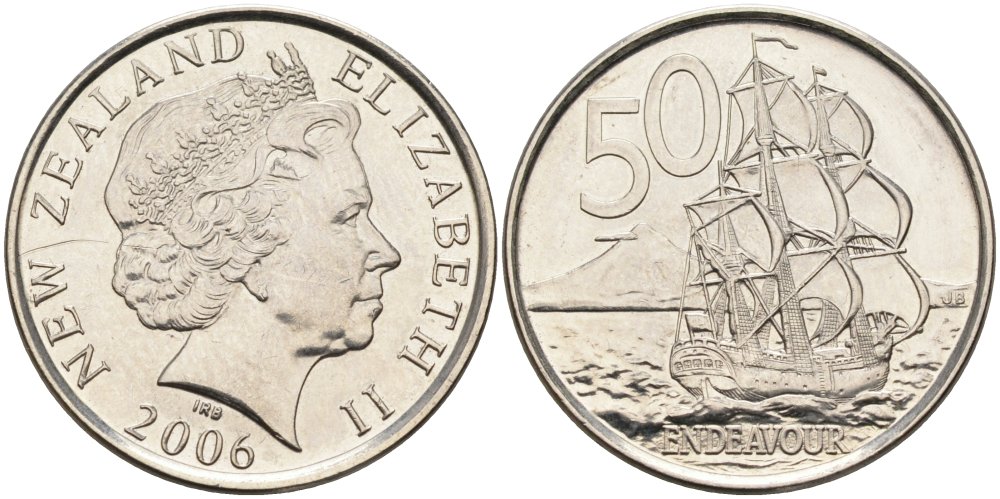 Новая Зеландия 50 центов 2006 Парусник Индевор, Елизавета II (1952-) KM 119а никелированная сталь 4579-1037
