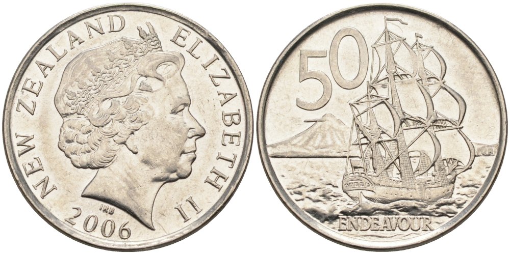 Новая Зеландия 50 центов 2006 Парусник Индевор, Елизавета II (1952-) KM 119а никелированная сталь 4579-1043