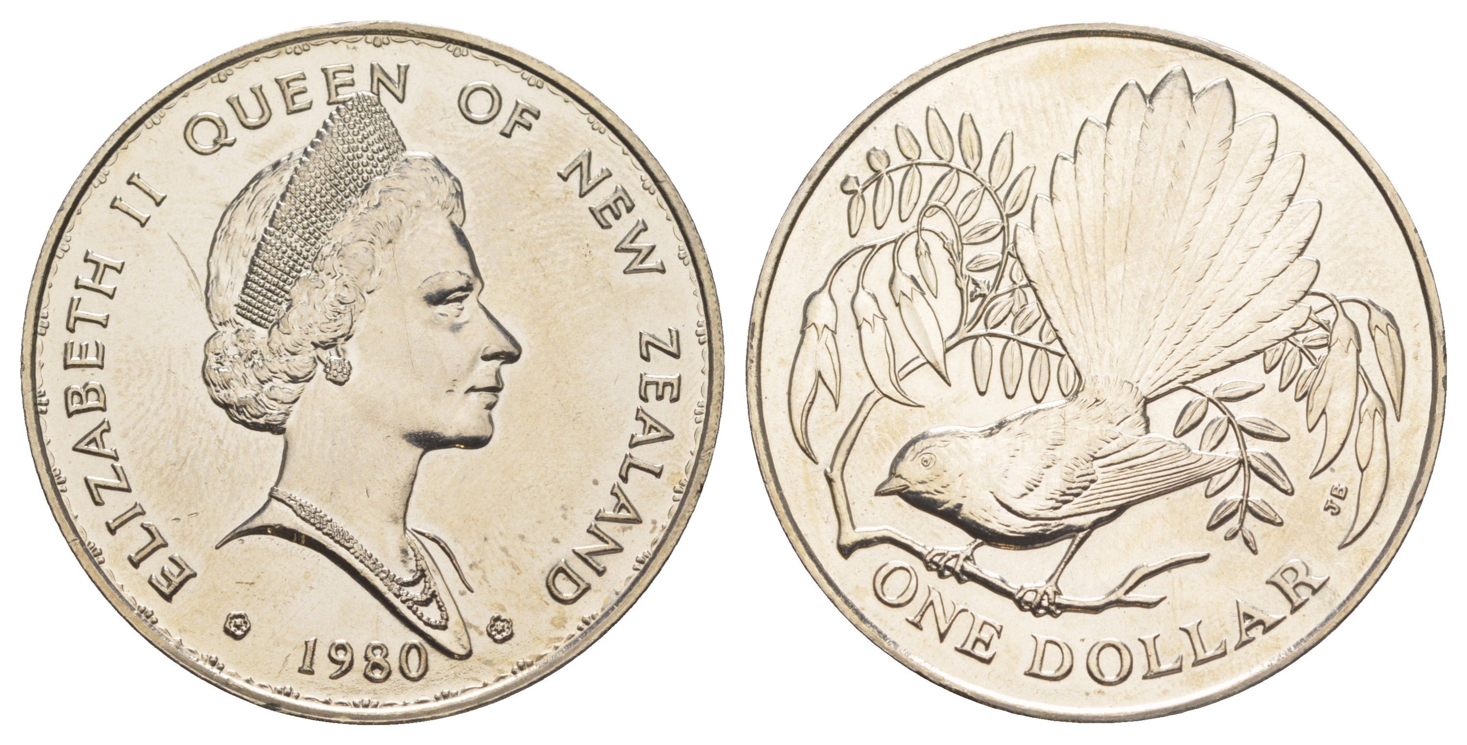 Новая Зеландия 1 доллар 1980 Птицы Новой Зеландии - Веерохвостка KM 49 медно-никель BU 4386-323