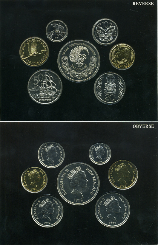 Новая Зеландия официальный набор из 7 монет 1992 25 лет десятичной системе, в оригинальном картонном буклете UNC 1-4-1-20