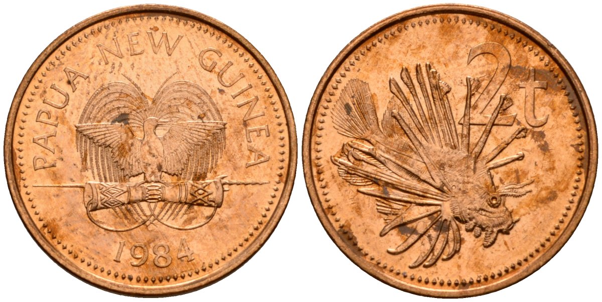 Папуа Новая Гвинея 2 тойя 1984 Елизавета II (1953-) KM 2 бронза 4187-931