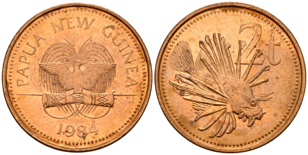 Папуа-Новая Гвинея 2 тойя 1984 Елизавета II (1953-) KM 2 бронза 4563-716