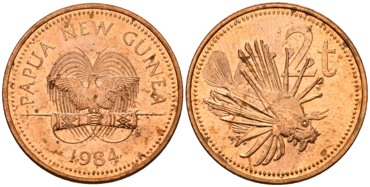 Папуа-Новая Гвинея 2 тойя 1984 Елизавета II (1953-) KM 2 бронза 4571-242