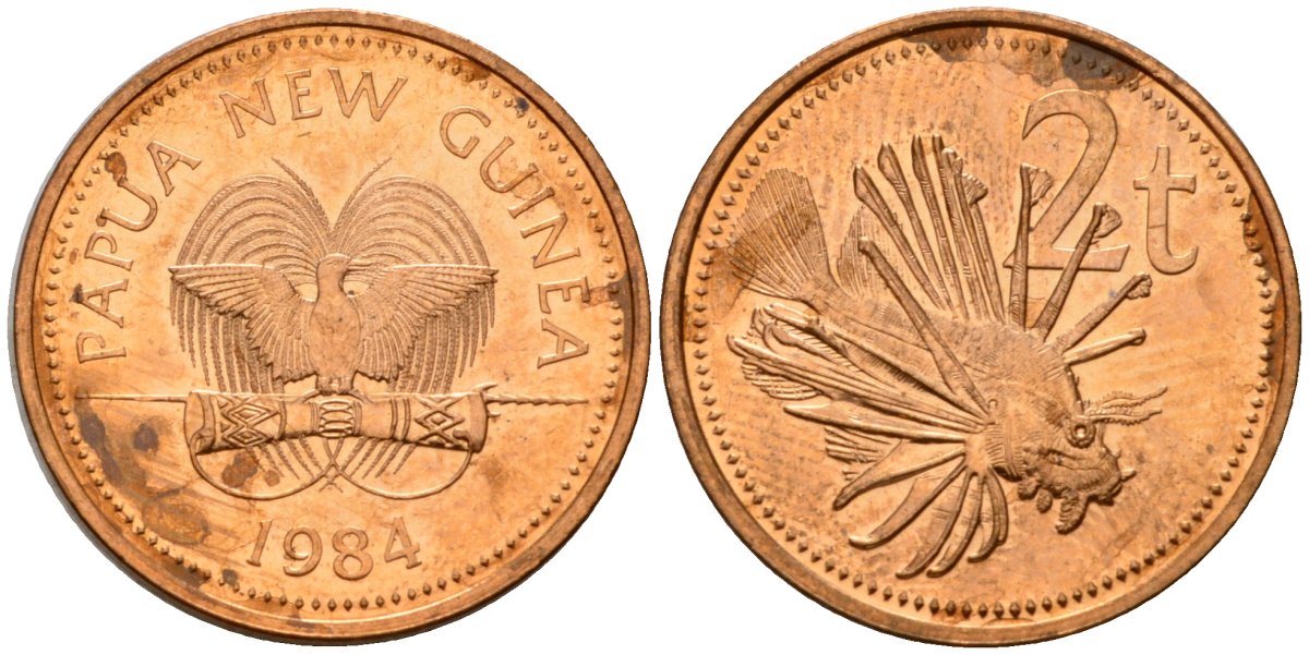 Папуа-Новая Гвинея 2 тойя 1984 Елизавета II (1953-) KM 2 бронза 4571-843