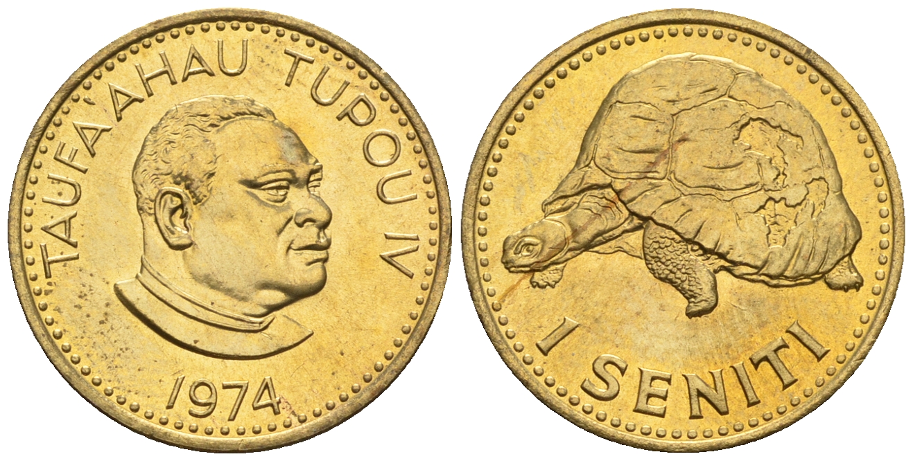 Тонга 1 сенити 1974 король Тауфа’ахау Тупоу IV (1967-2006), черепаха KM 27 a латунь UNC 220-1044