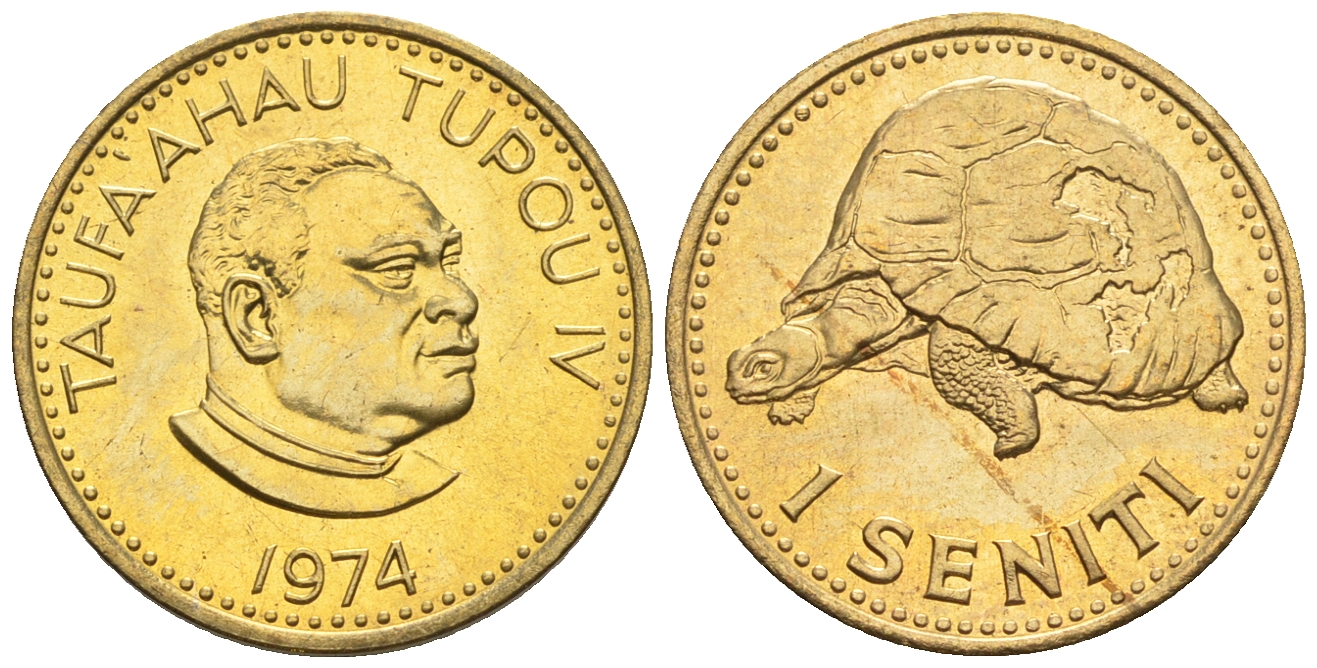 Тонга 1 сенити 1974 король Тауфа’ахау Тупоу IV (1967-2006), черепаха KM 27 a латунь UNC 220-1045