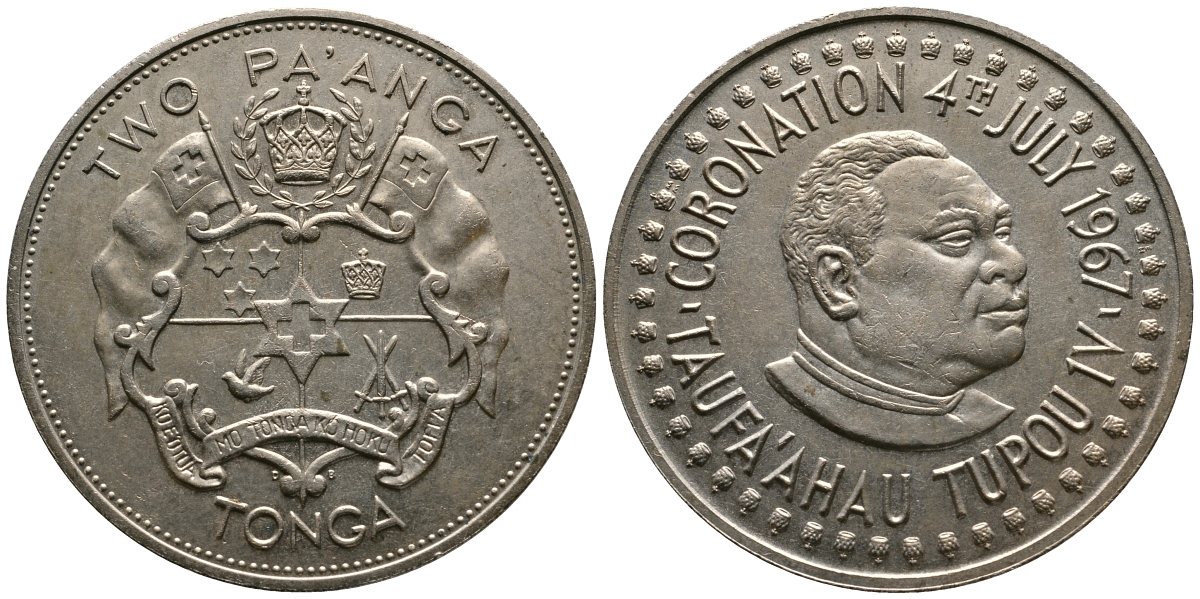 Тонга 2 паанга 1967 4 июля 1967 коронация Тауфа’ахау Тупоу IV KM 19 медно-никель 272-523