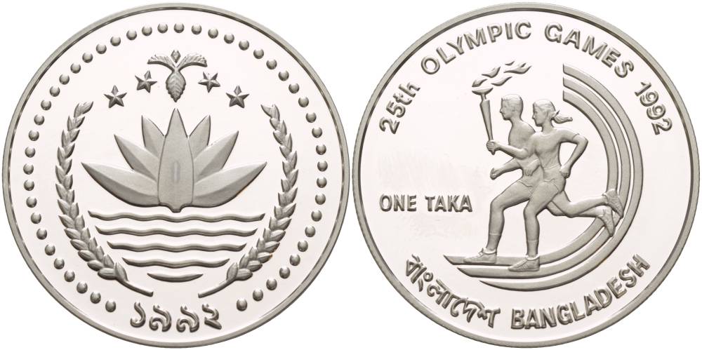 Бангладеш 1 така 1992 XXV Олимпийские игры в Барселоне 1992 год, бег KM 14 серебро PROOF 1088-10-62