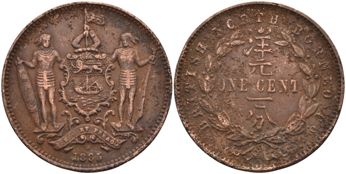 Британское Северное Борнео 1 цент 1885 Британская колония KM 2 бронза 4590-713