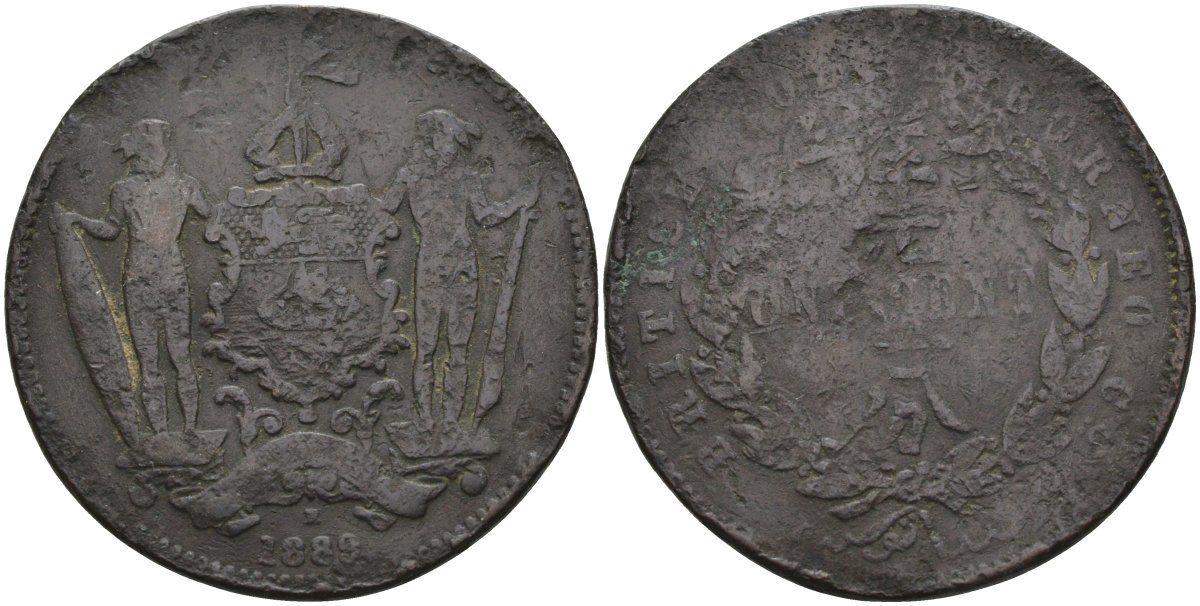 Британское Северное Борнео 1 цент 1889 Н KM 2 бронза 4593-345
