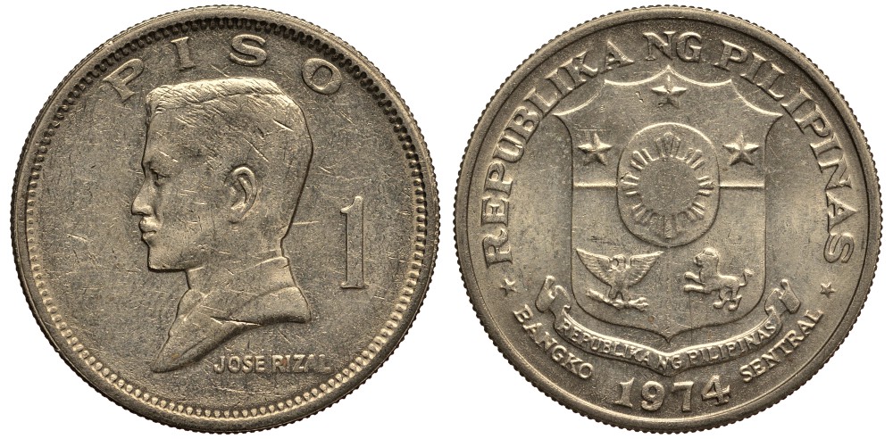 Филиппины 1 писо 1974 Хосе Рицаль KM 203 медь никель цинк 118-1121