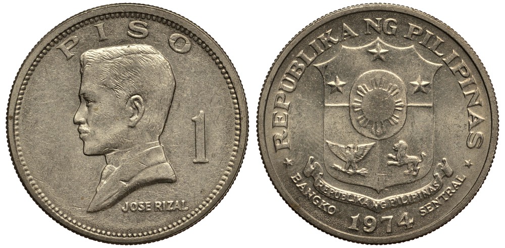 Филиппины 1 писо 1974 Хосе Рицаль KM 203 медь никель цинк 118-1124