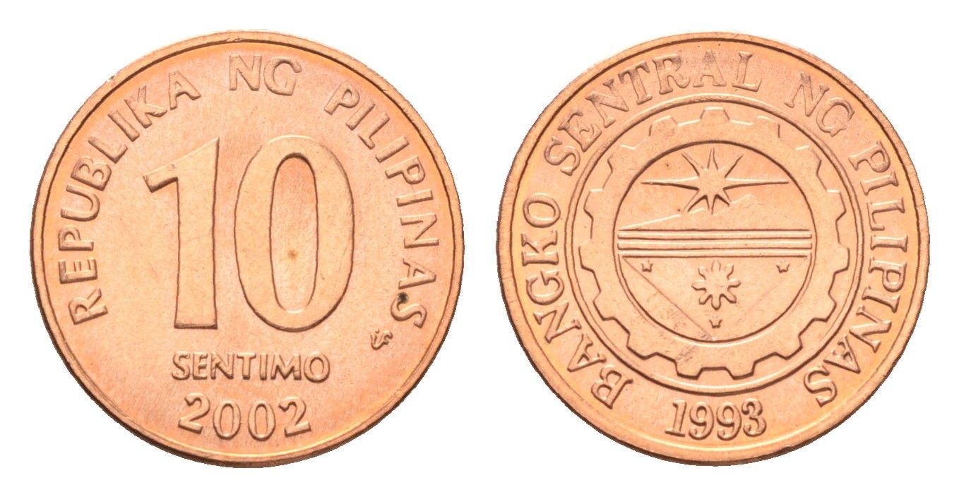 Филиппины 10 сентимо 2002 KM 270 сталь плакированная медью UNC 4668-711