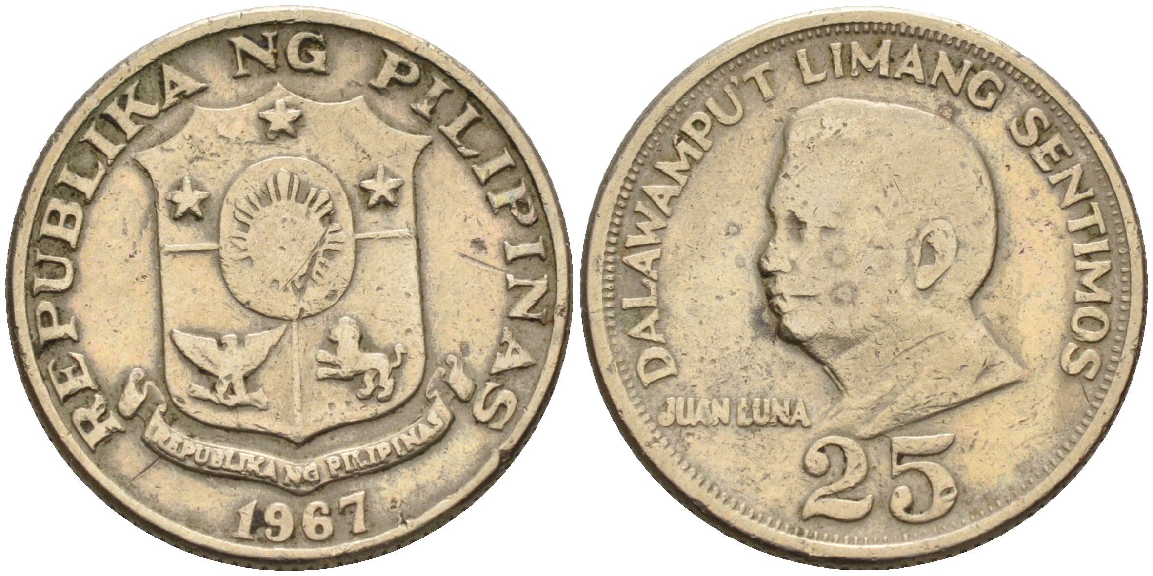 Филиппины 25 сентимо 1967 Хуан Луна KM 199 медь цинк никель 4595-953