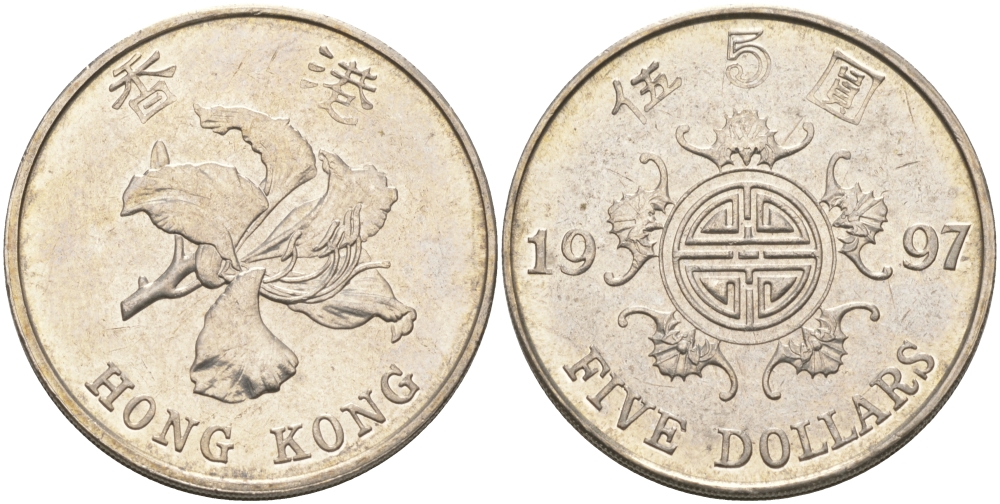Гонконг 5 долларов 1997 KM 65 медно-никель aUNC 97-513
