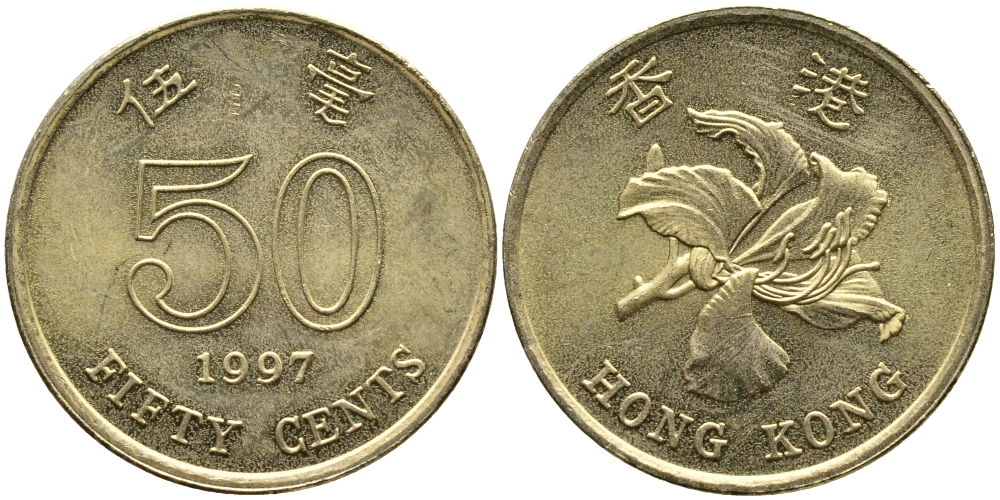 Гонконг 50 центов 1997 KM 68 сталь плакированная латунью 4388-741