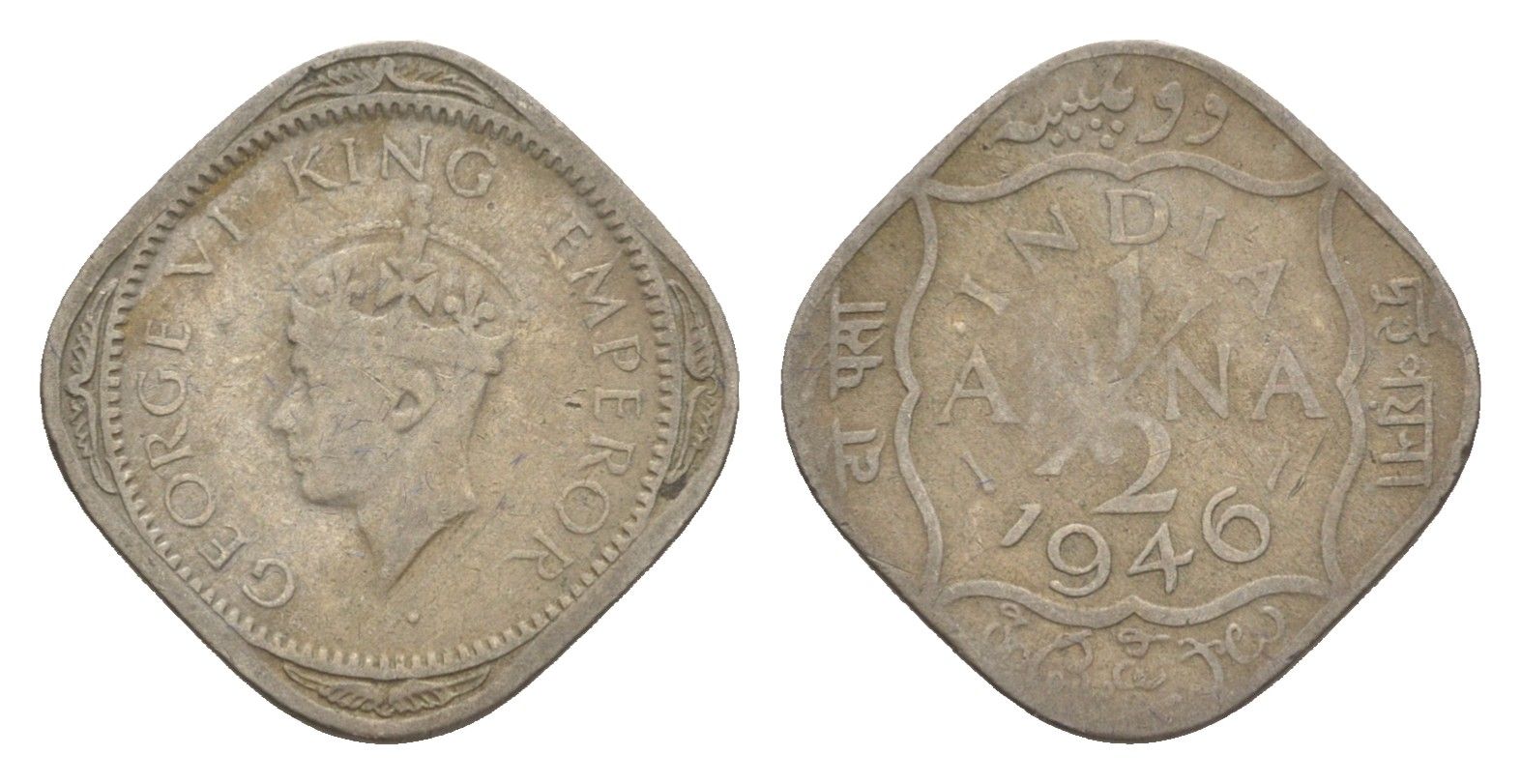 Британская Индия 1/2 анна 1946 Георг VI (1936-1952) KM 535 медно-никель 4649-337
