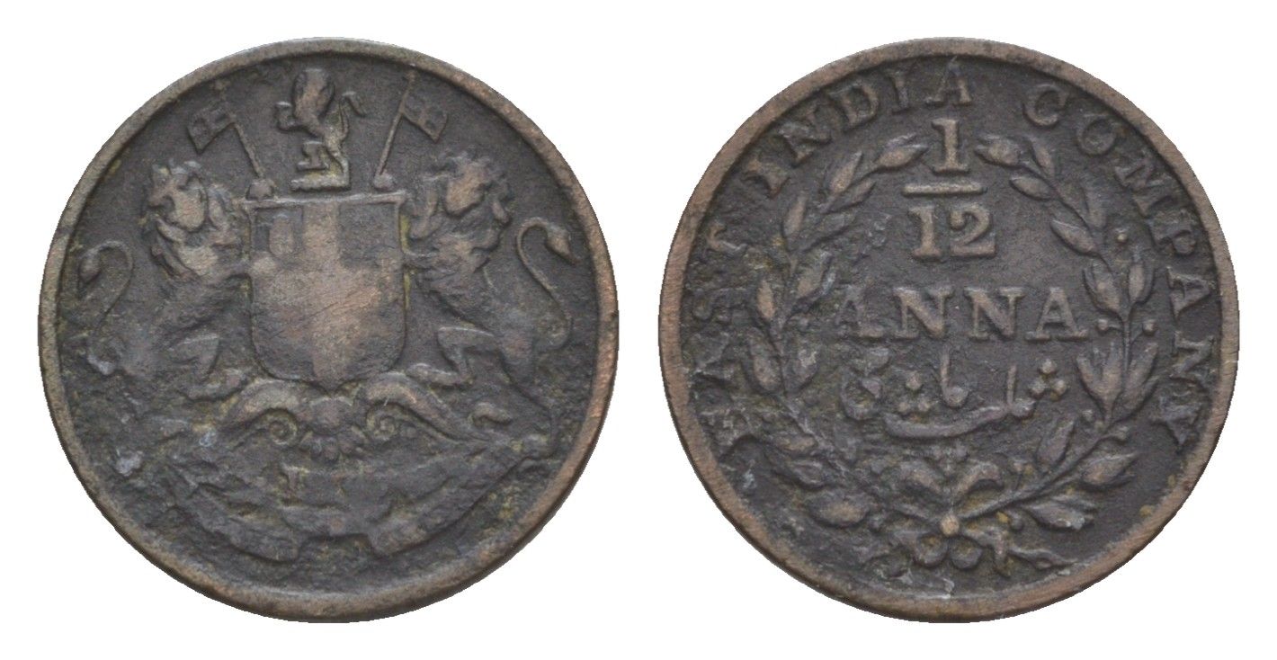 Британская Индия (Ост-Индская компания) 1/12 анны 1835 KM 445 медь 75-1112