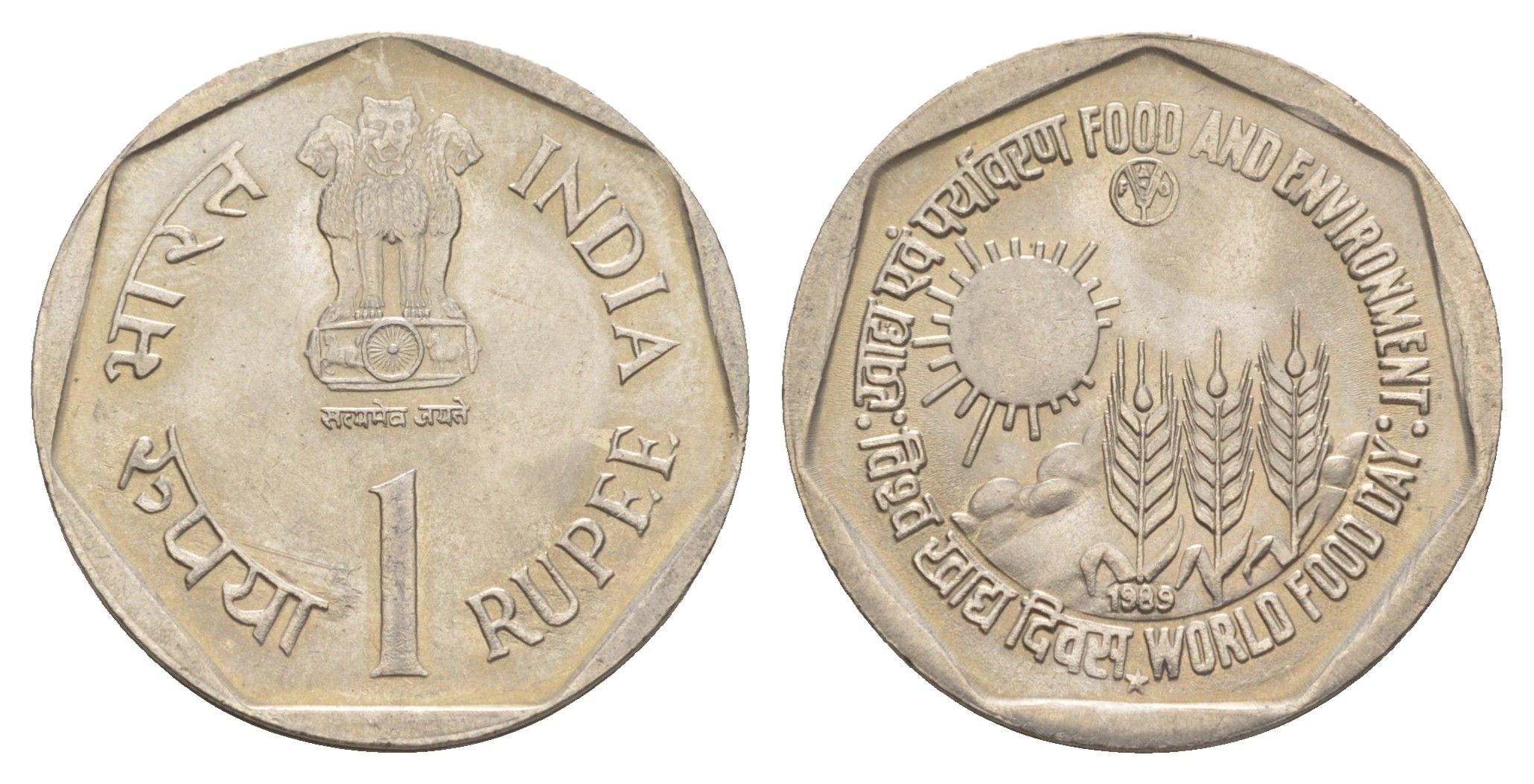Индия 1 рупия 1989 ФАО - Еда и окружающая среда KM 84 медно-никель UNC 4650-1052