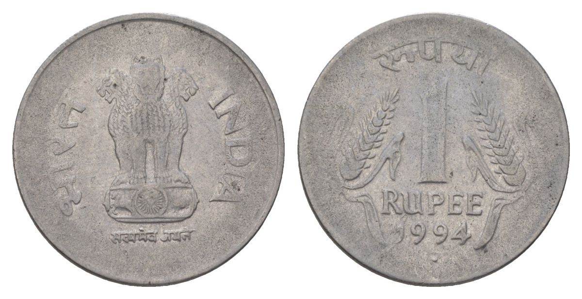 Индия 1 рупия 1994 Отметка монетного двора - точка - Ноида KM 92.1 нержавеющая сталь 4624-1127