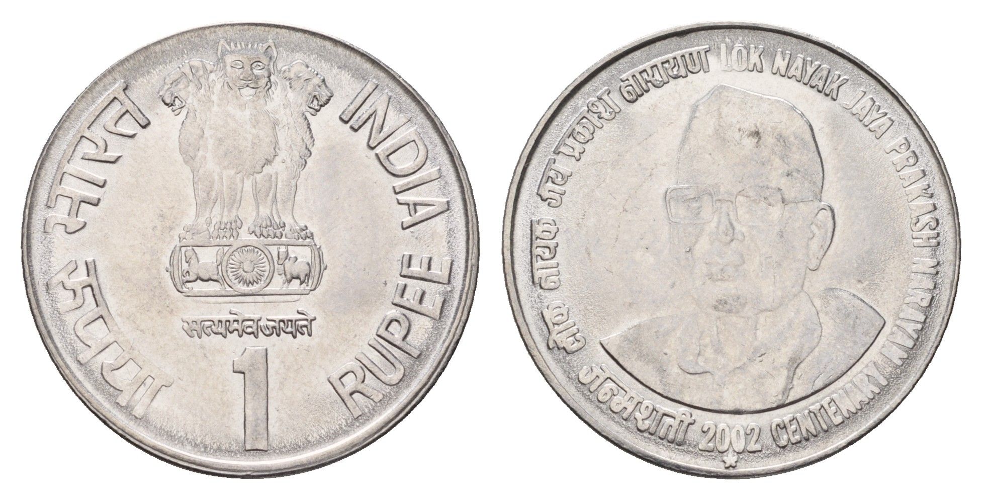 Индия 1 рупия 2002 100 лет со дня рождения Джаяпракаша Нараяна KM 313 нержавеющая сталь UNC 4654-1246