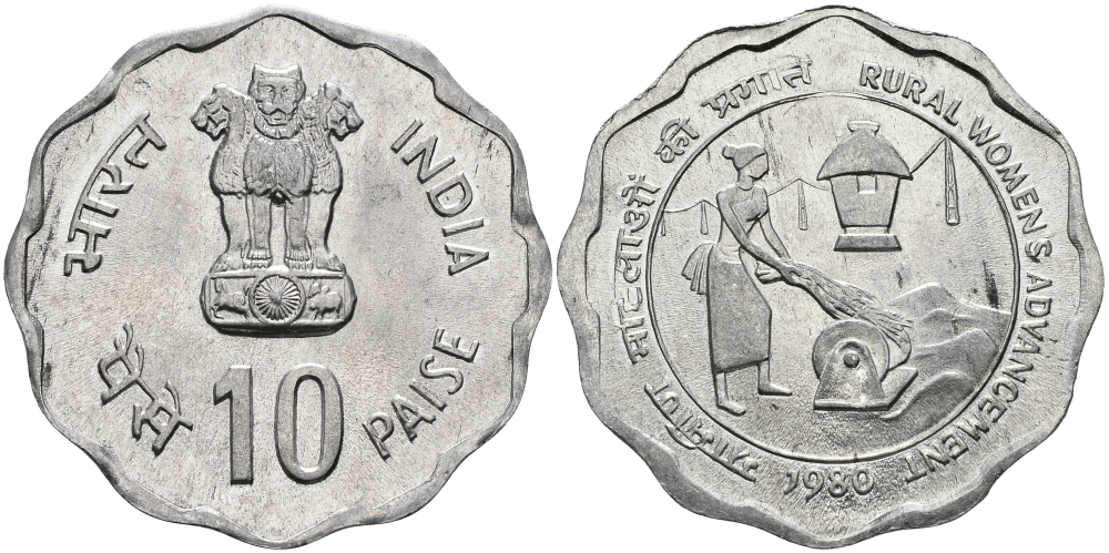 Индия 10 пайсов 1980 улучшение жизни сельских женщин KM 36 алюминий UNC 94-1142