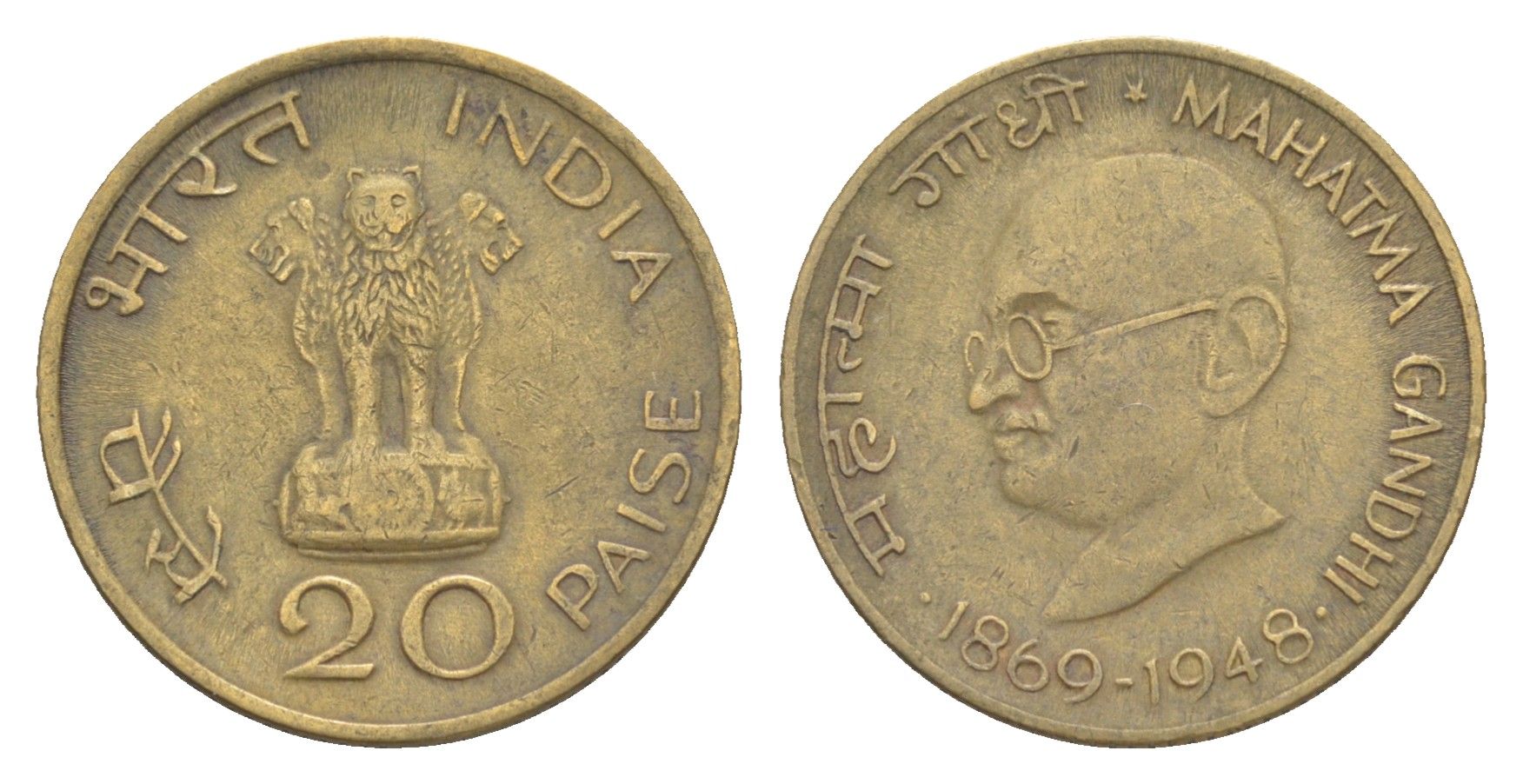Индия 20 пайс 1969 100 лет со дня рождения Махатмы Ганди KM 42 алюминиевая бронза 4649-366