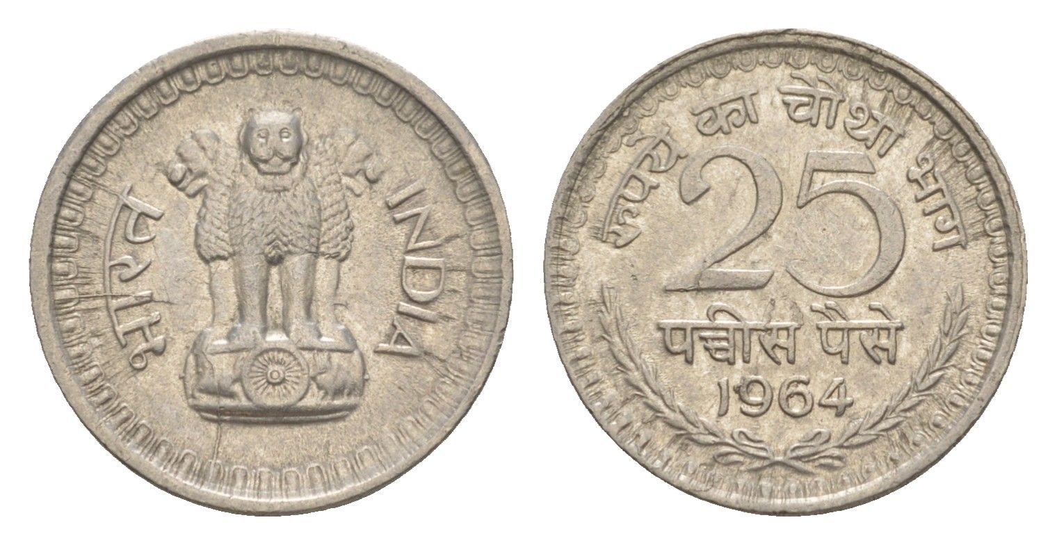 Индия 25 пайс 1964 Без отметки монетного двора - Калькутта KM 48.1 никель UNC 4649-369