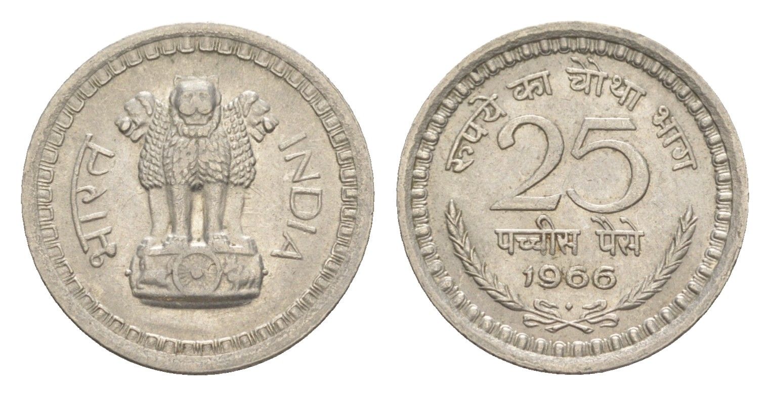 Индия 25 пайс 1966 монетный двор Ромб KM 48.2 никель UNC 4649-411