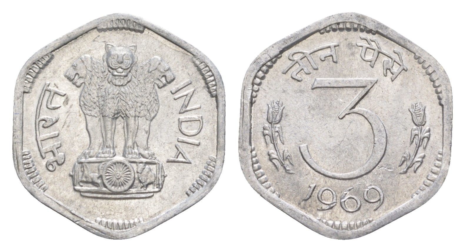 Индия 3 пайса 1969 Без отметки монетного двора - Калькутта KM 14.2 алюминий UNC 4649-356