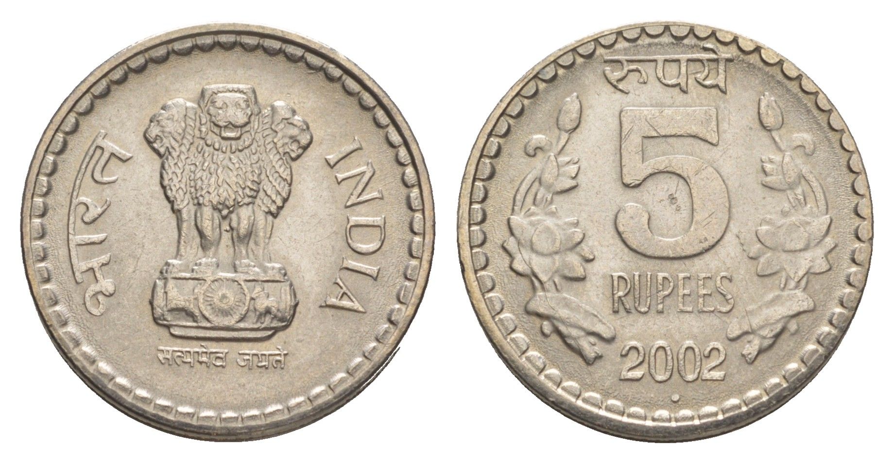 Индия 5 рупий 2002 KM 154.1 медно-никель 4650-1153