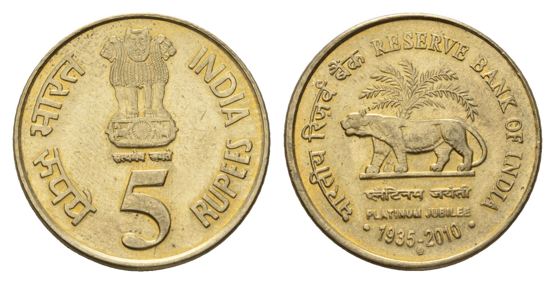 Индия 5 рупий 2010 75 лет Резервному банку Индии KM 387 никель латунь UNC 4119-921