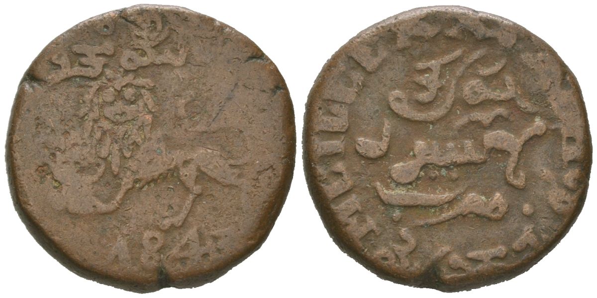 Индия, Майсур 20 кэш 1843 Кришнараджа Водеяр III C 193.2 медь 4615-843
