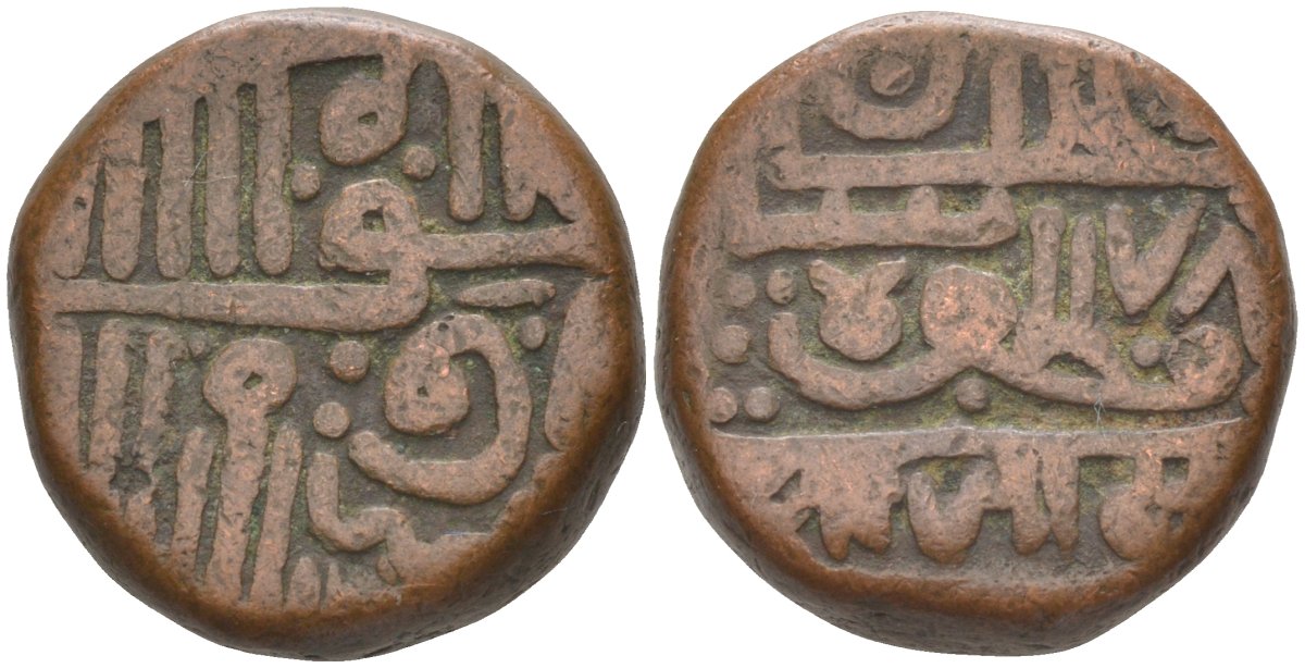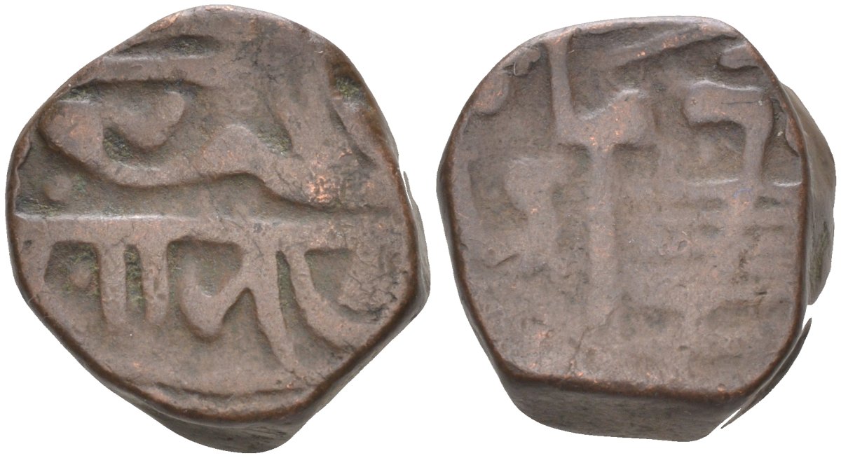 Индия, Наванагар (Nawanagar) 1 дхингло (dhinglo) АН(9)78 Vibnaji (1850-1894), красивый стиль с 1850 AD, вес 11,88 гр. KM 8 медь 4112-532