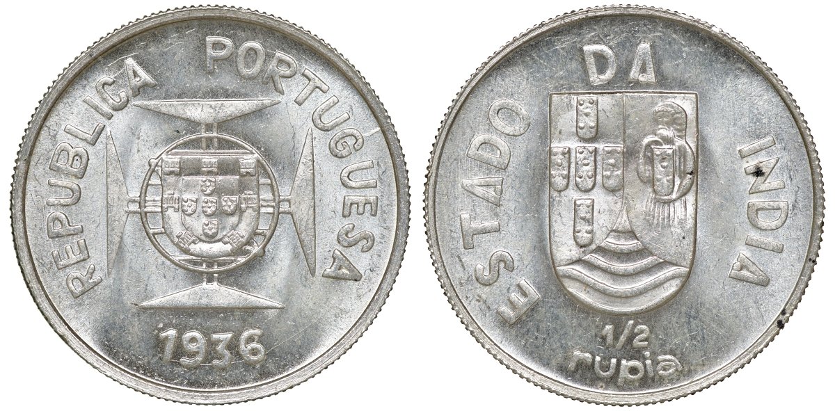 Португальская Индия 1/2 рупии 1936 KM 23 серебро UNC 4044-1431
