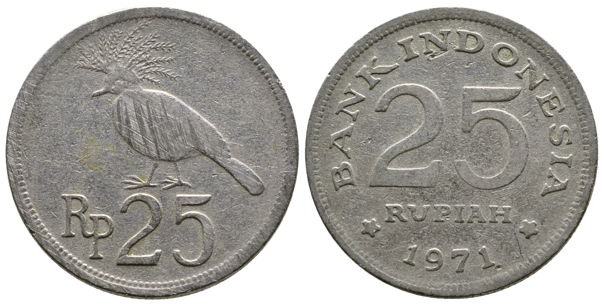 ИНДОНЕЗИЯ 25 РУПИЙ 1971 ВЕНЦЕНОСНЫЙ ГОЛУБЬ KM 34 медно-никель 4384-143