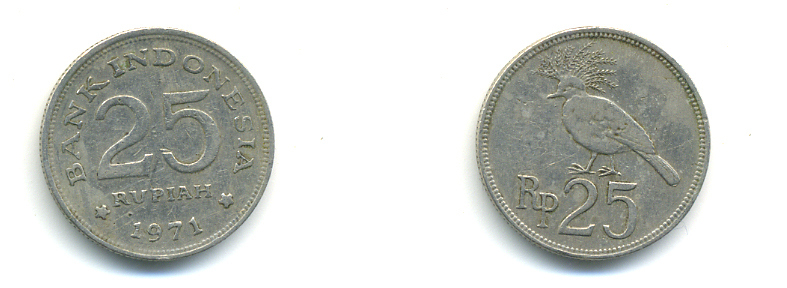 ИНДОНЕЗИЯ 25 РУПИЙ 1971 ВЕНЦЕНОСНЫЙ ГОЛУБЬ KM 34 медно-никель 86-852