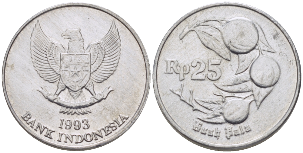 Индонезия 25 рупий 1993 мускатный орех KM 55 алюминий 66-423