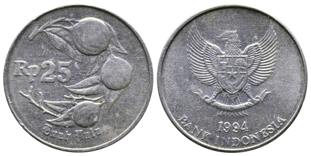 Индонезия 25 рупий 1994 мускатный орех KM 55 алюминий 177-521