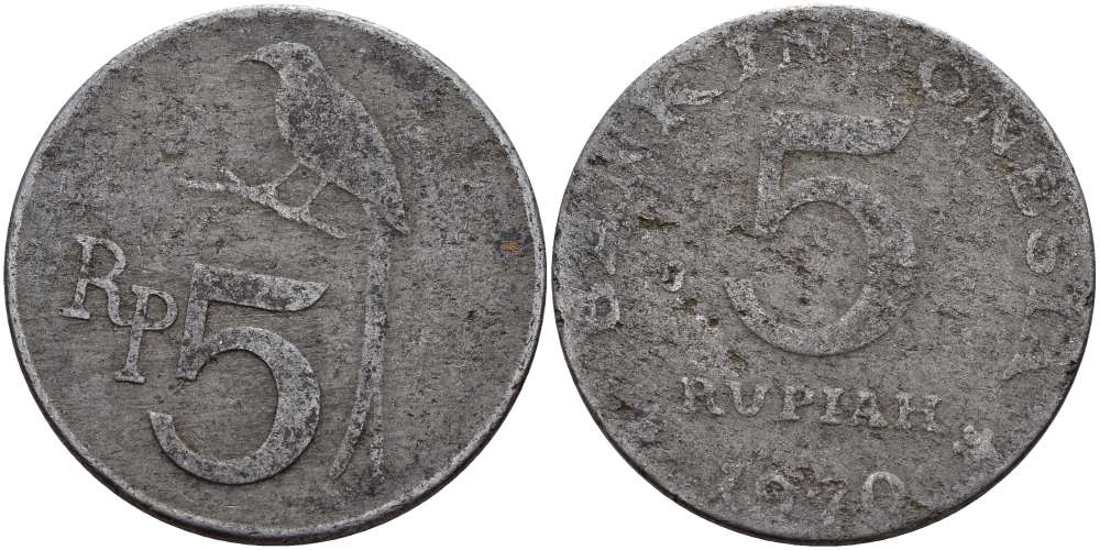 ИНДОНЕЗИЯ 5 РУПИЙ 1970 BLACK DRONGO KM 22 алюминий 4381-213