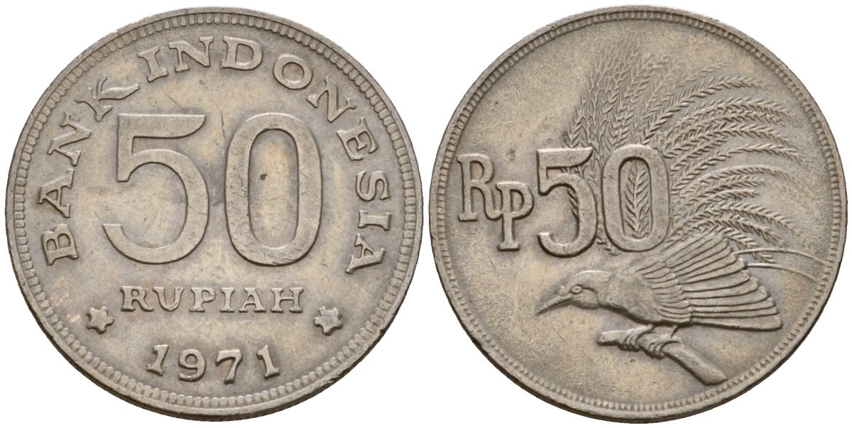 Индонезия 50 рупий 1971 райская птица KM 35 медно-никель UNC 4601-552