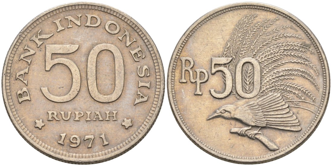 Индонезия 50 рупий 1971 РАЙСКАЯ ПТИЦА KM 35 медно-никель 4573-742