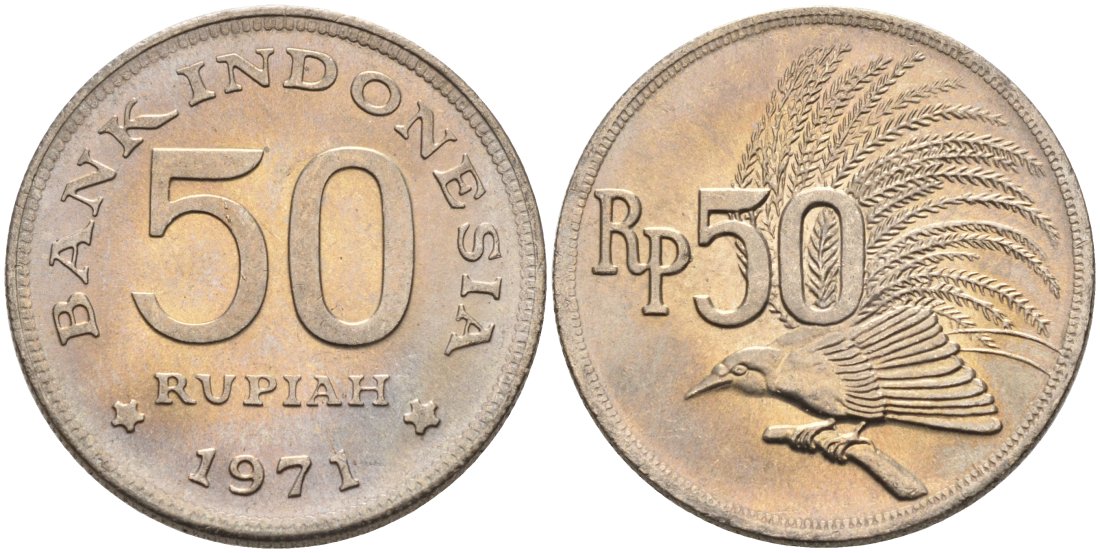 Индонезия 50 рупий 1971 РАЙСКАЯ ПТИЦА KM 35 медно-никель 92-913