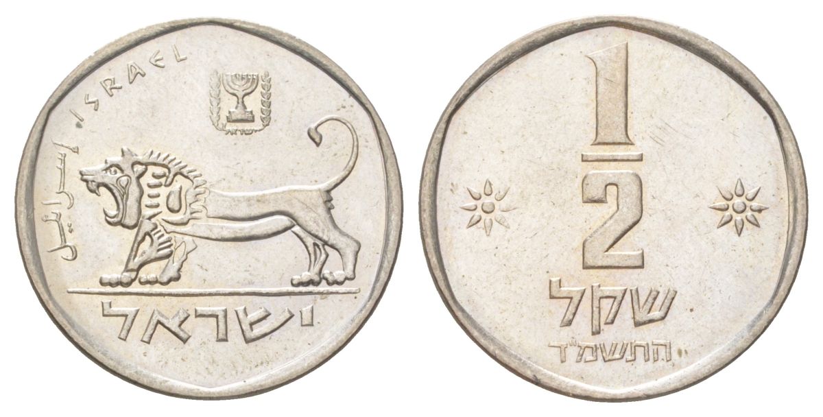 Израиль 1/2 шекелея 1984 JE 5744, редкий год, тираж 250000 экземпляров KM 109 медно-никель UNC 4627-866
