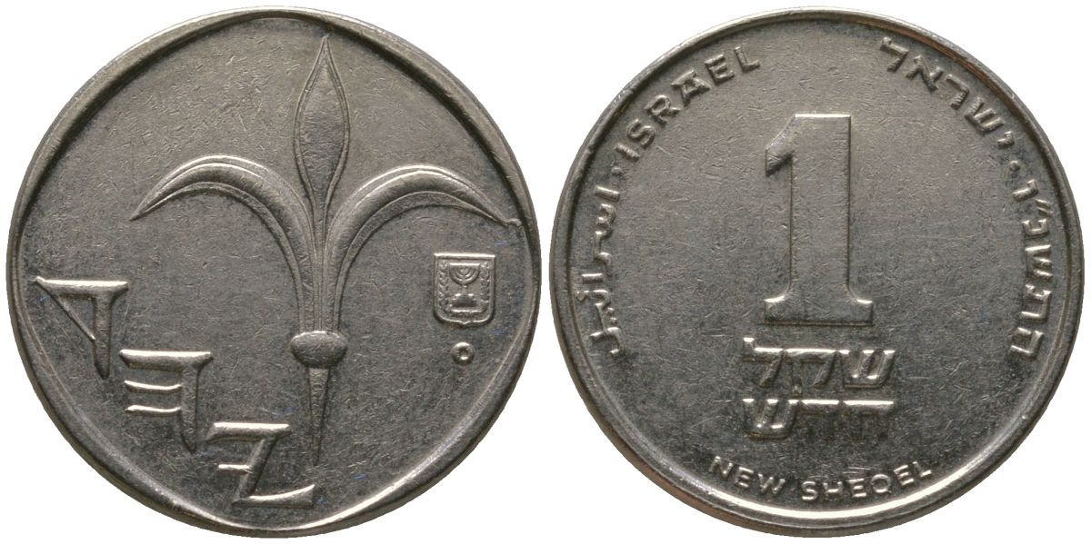 Израиль 1 новый шекель 1996 JE 5756 KM 160a сталь плакированная никелем aUNC 4396-133