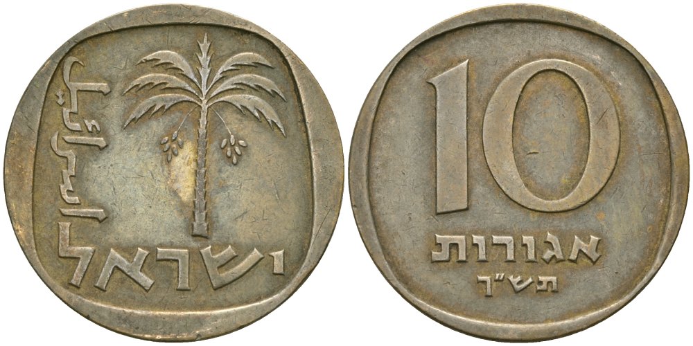 Израиль 10 агора 1960 JE5720 KM 26 алюминиевая бронза 4579-235