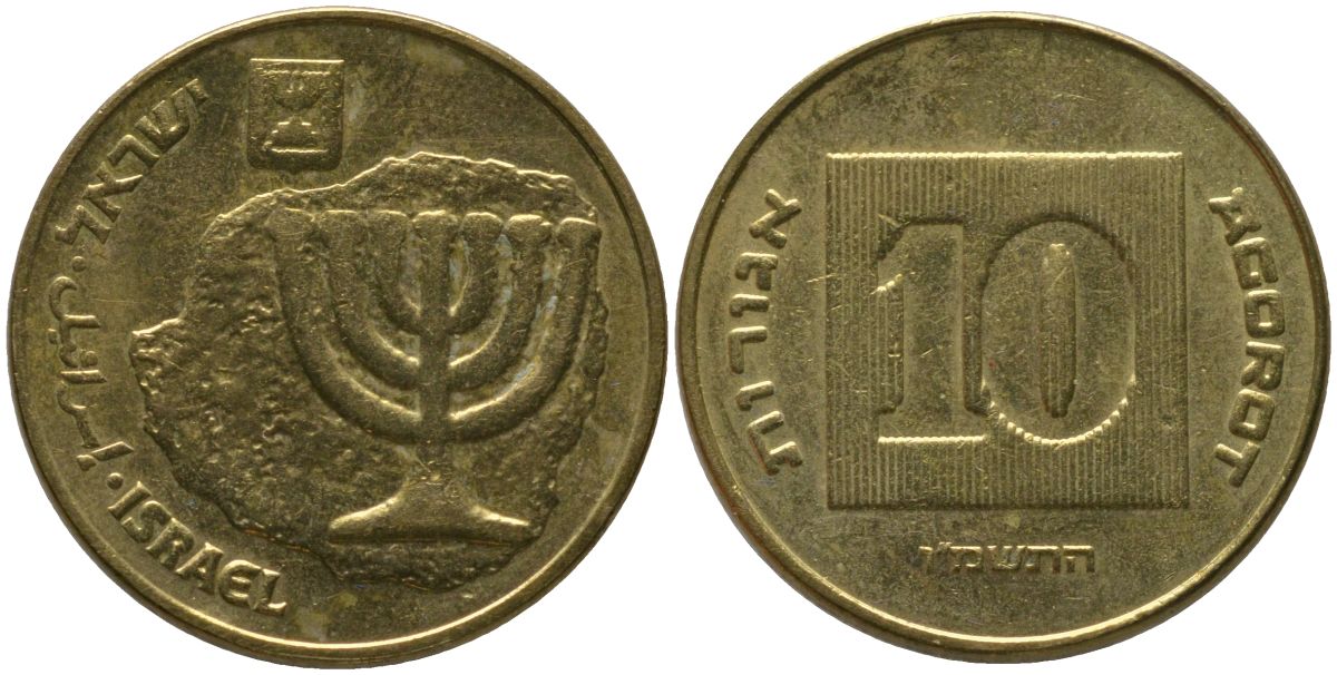 Израиль 10 агорот 1986 JE 5746 KM 158 алюминиевая бронза 4390-853