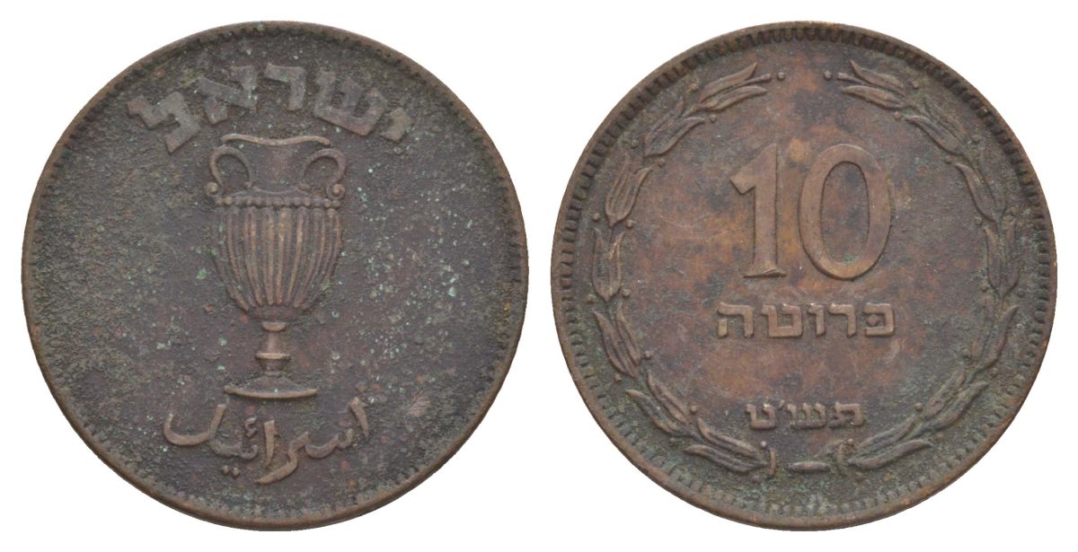 Израиль 10 прут 1949 JE 5709 KM 11 бронза 38-235