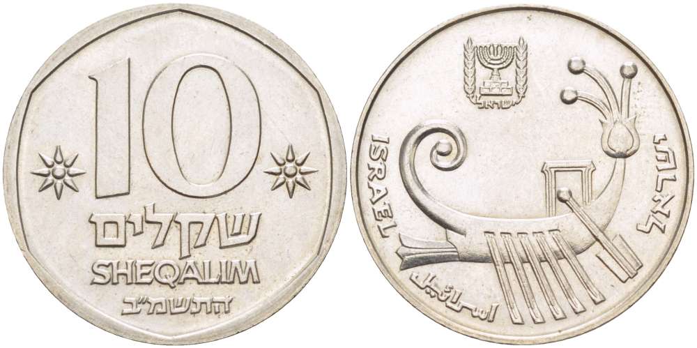 ИЗРАИЛЬ 10 ШЕКЕЛЕЙ 1982 KM 119 медно-никель 4514-347
